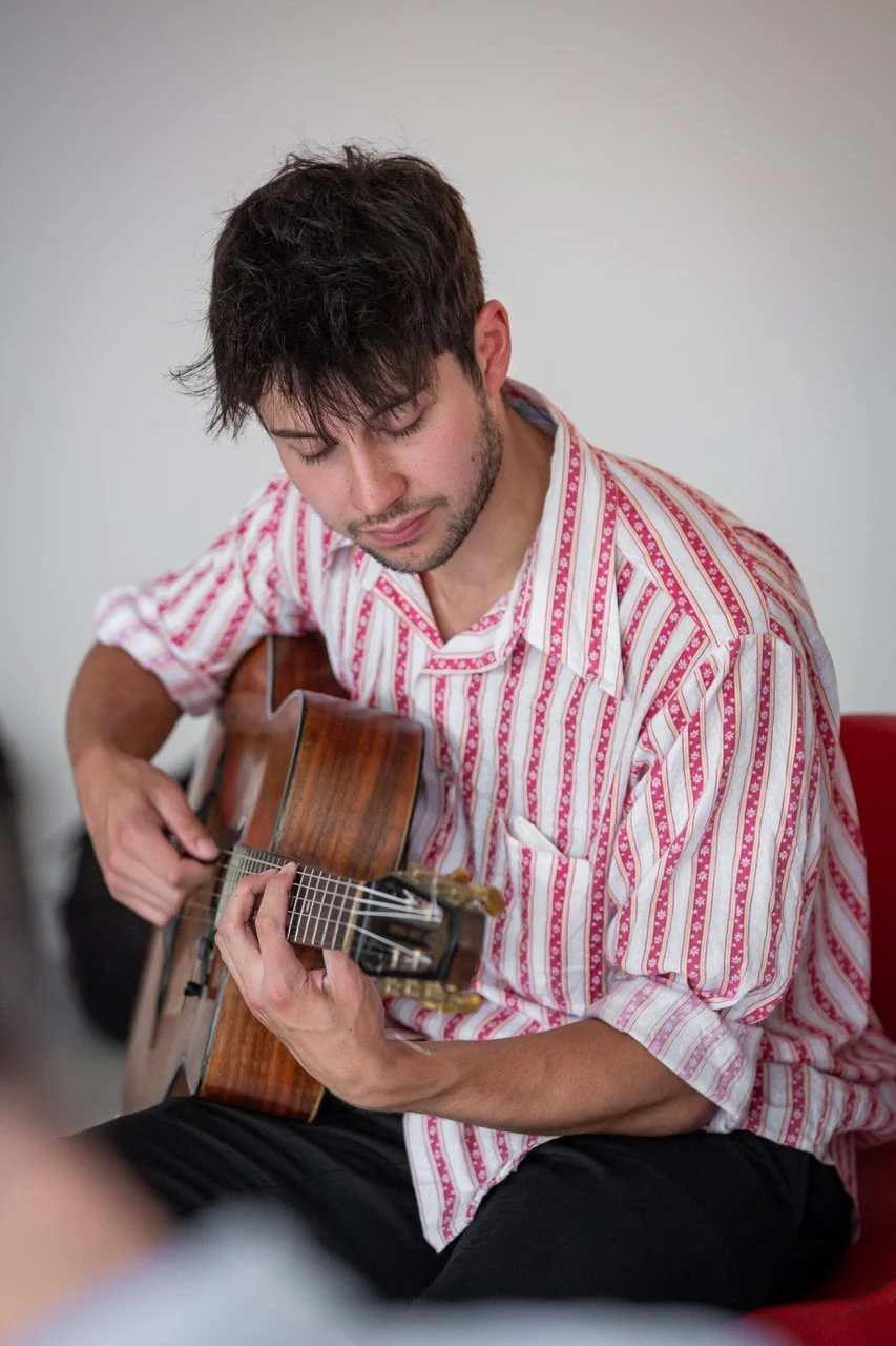Sol graduated from Guildhall in the summer of 2023 with first class honours. Sol’s music has taken him to play on 4 continents, most recently performing at the Django Reinhardt Festival in Fontainebleau in June 2024 with the London Django Collective. Despite loving the buzz of London, Sol loves returning home to see his family on the Isle of Wight. On his mother’s side his family are dairy farmers which Sol is very proud of. Sol loves walking round the lanes and swimming in the sea, followed by a nice local ale!