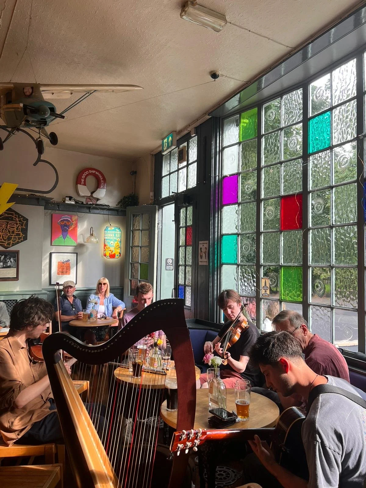 The Myddleton Arms Gypsy Jazz sessions are a favourite for many with acoustic guitars and double bass in the front room of the cosy Myddleton Arms Pub.